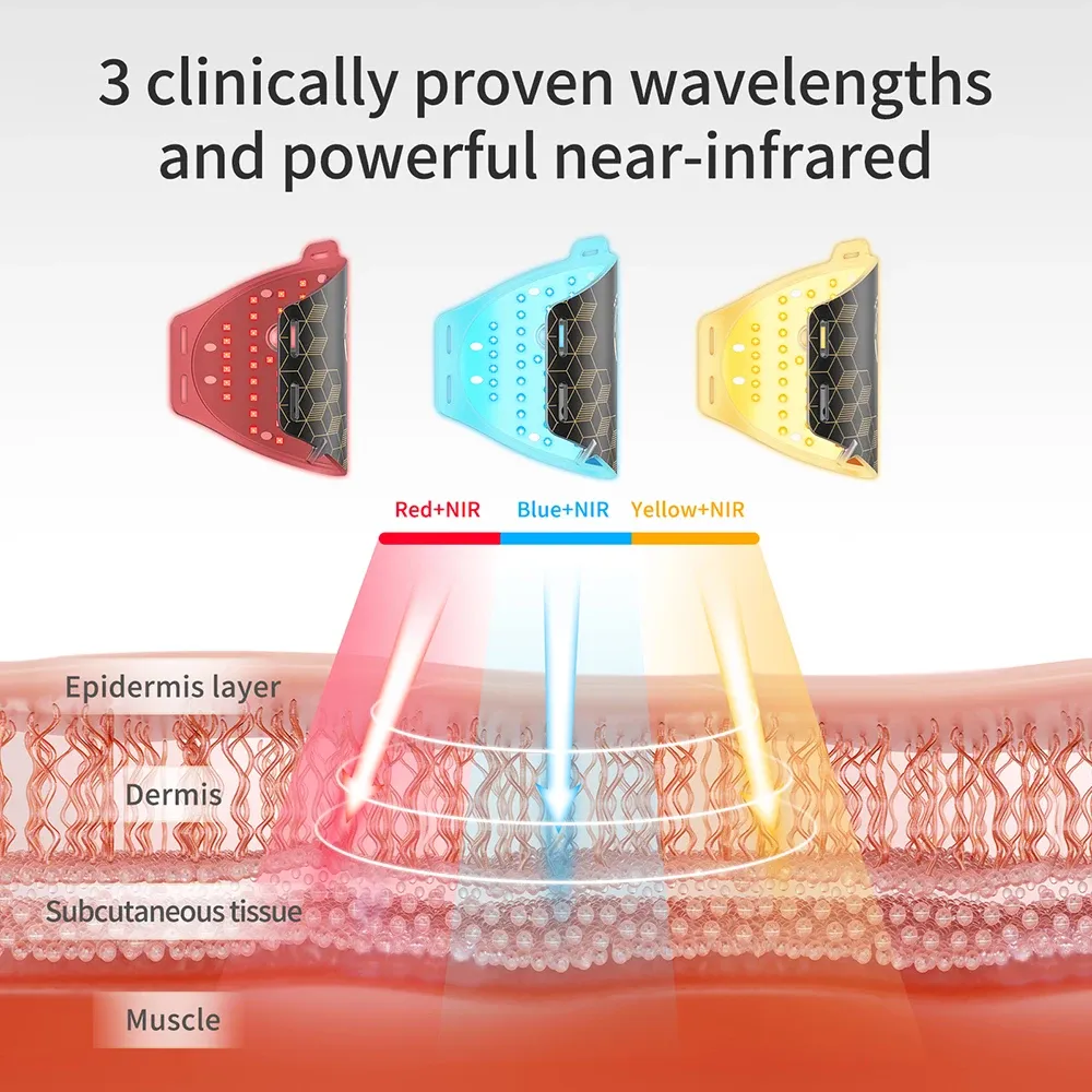 Transform your skincare routine with the 3-Color Photorejuvenation Facial Mask, an advanced LED therapy device designed to restore, brighten, and rejuvenate your skin from the comfort of home. This innovative mask features red, blue, and yellow light therapy, each enhanced with near-infrared light (850 nm) to penetrate deeply and maximize results for a youthful, radiant complexion.