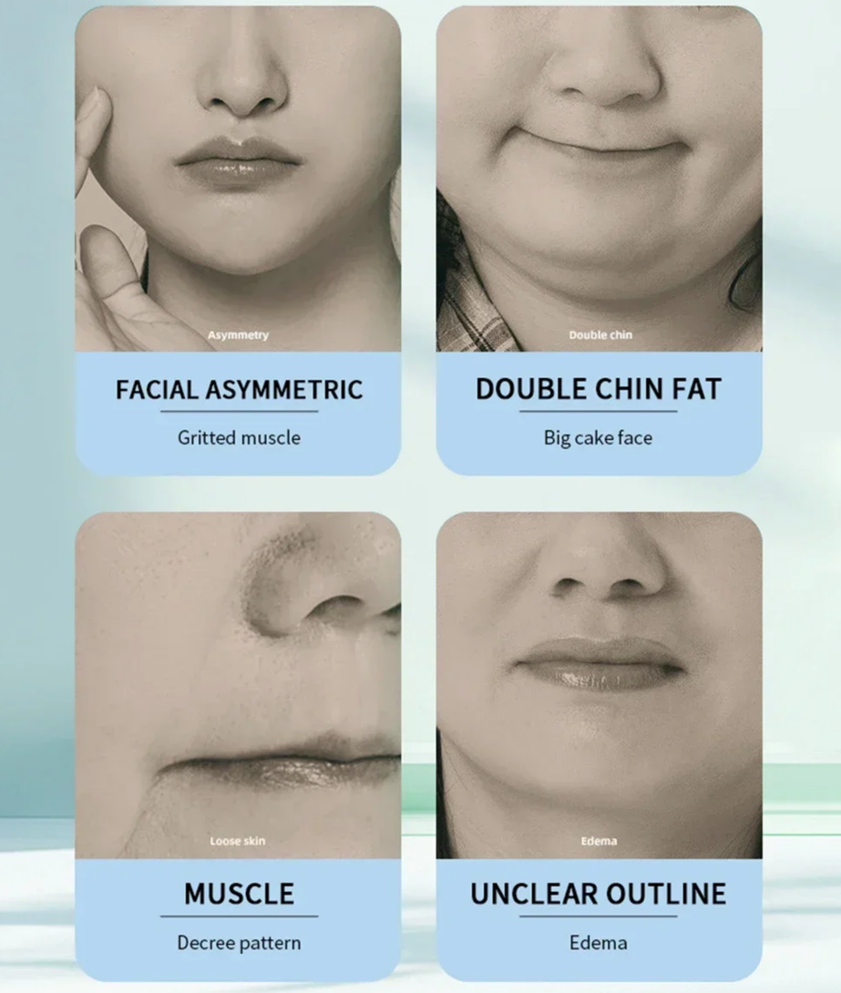 4. Facial Contouring: Targets fat reduction in the face, helping shrink fat cells and sculpt a small, defined “V” face.