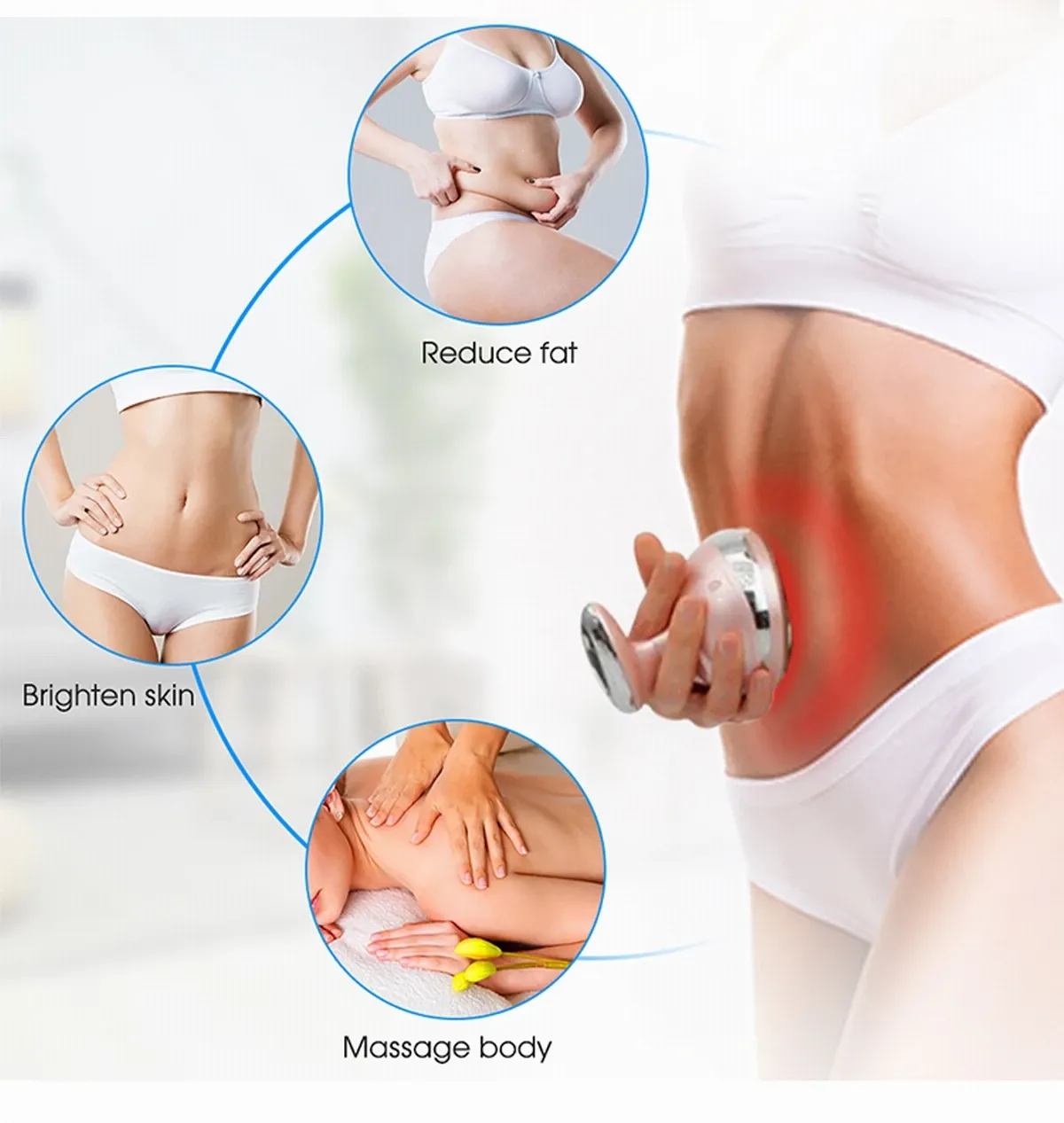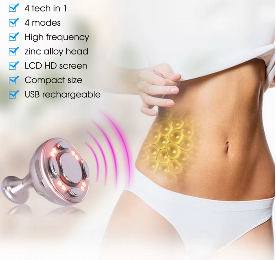 - Ultrasonic Cavitation Function – Delivers 300,000 high-frequency vibrations per second to stimulate deep skin cells, accelerate fat metabolism, break down fat deposits, and promote lymphatic drainage for visible slimming results.