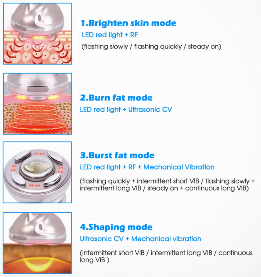 - Burn Fat Mode: LED red light + Ultrasonic Cavitation function